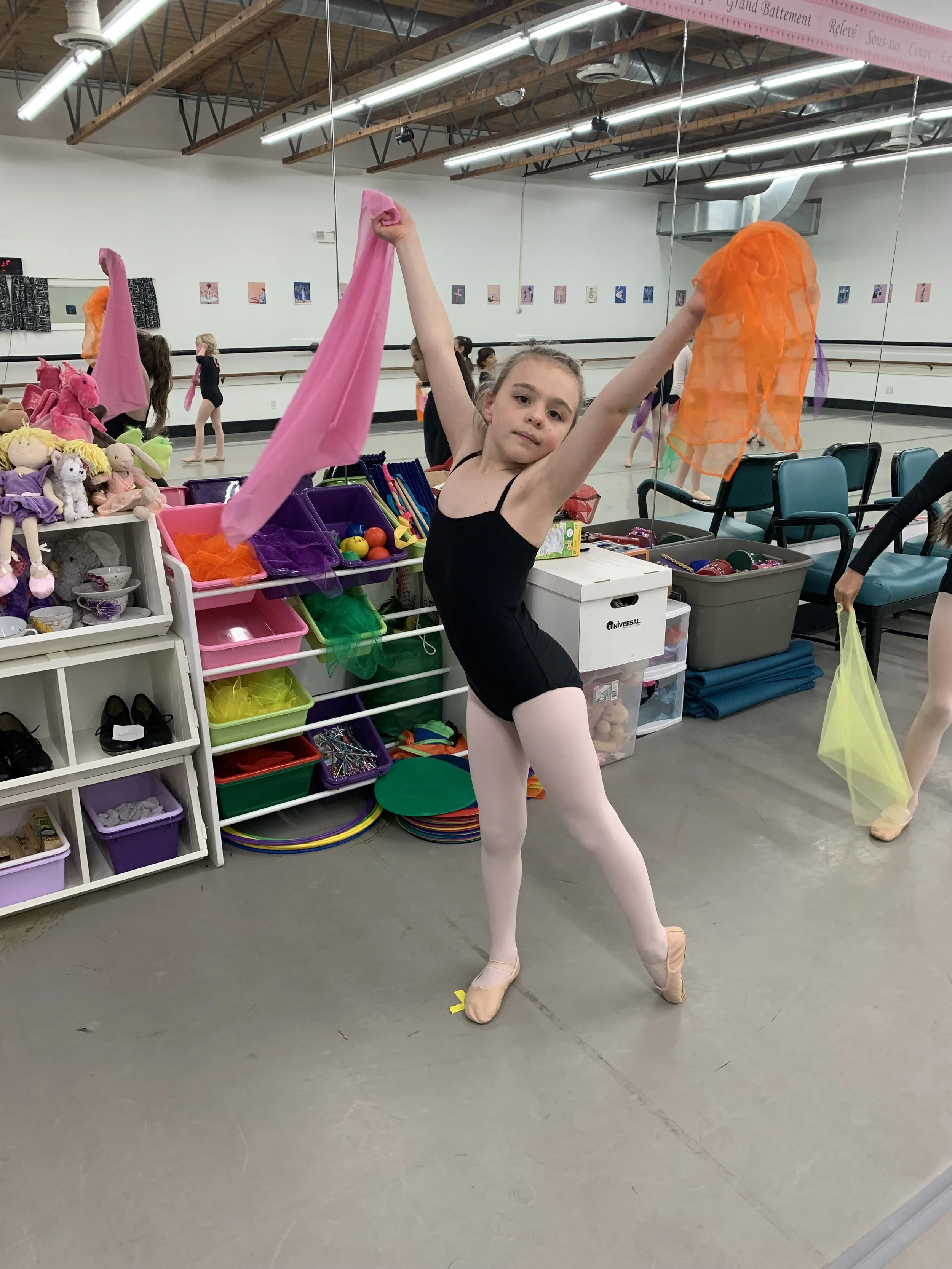 We teach: Ballet, Pointe, Variations, Jazz, Lyrical, Modern, Hip Hop, Musical Theatre, Tap, and Creative Movement.